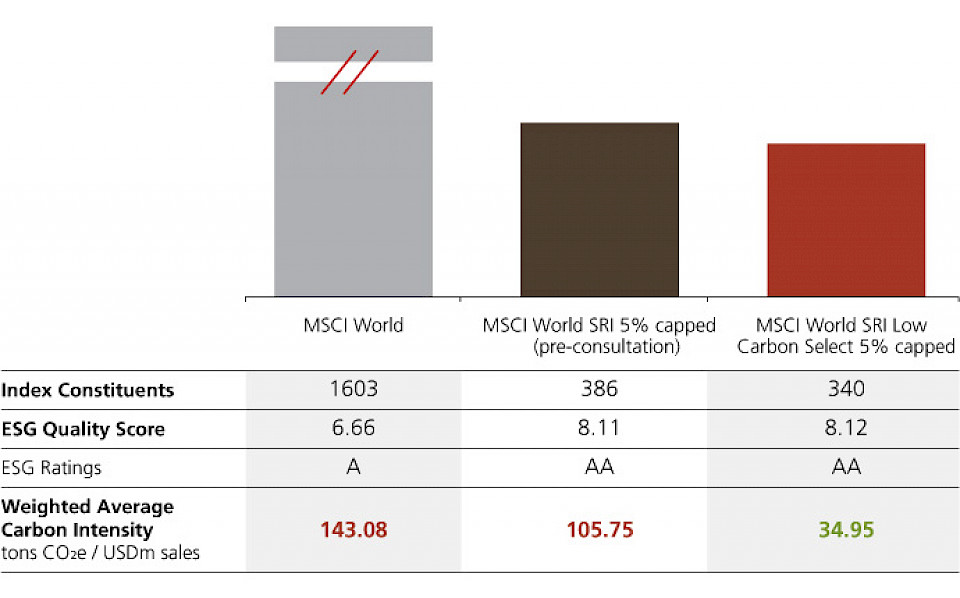 Sämtliche UBS MSCI SRI ETFs bilden neu ihre jeweiligen MSCI SRI Low Carbon Select Indizes nach und sind somit sehr effiziente Anlagelösungen, die durch den Klimawandel bedingte Chancen nutzen und Risiken begrenzen können.
