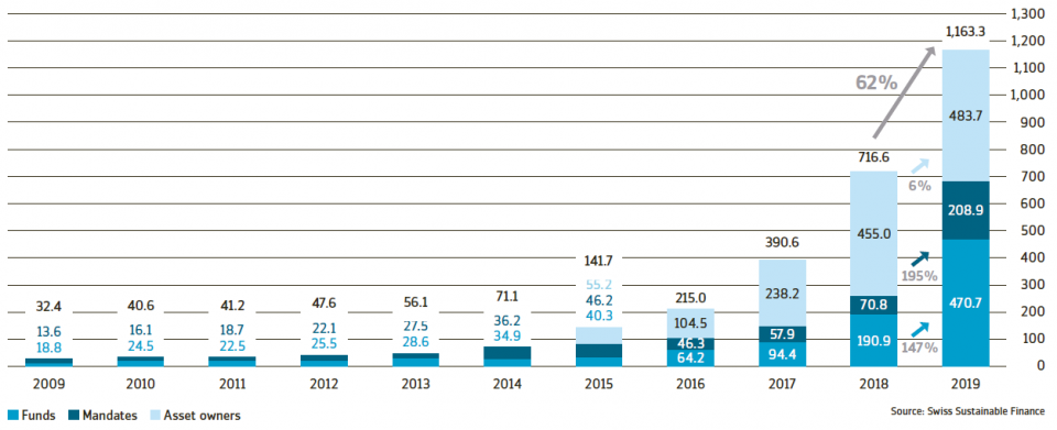 Das Wachstum nachhaltiger Anlagen in der Schweiz (in Mrd. CHF)