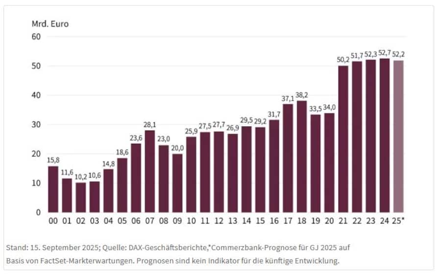 DAX-Dividendensumme für die Geschäftsjahre 2000 bis 2025*