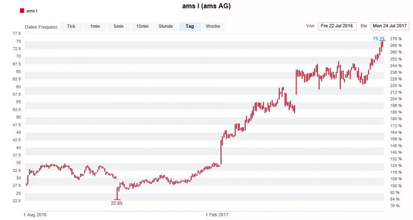 Beeindruckender Höhenflug der AMS-Aktie seit Jahresbeginn (Quelle: www.cash.ch)