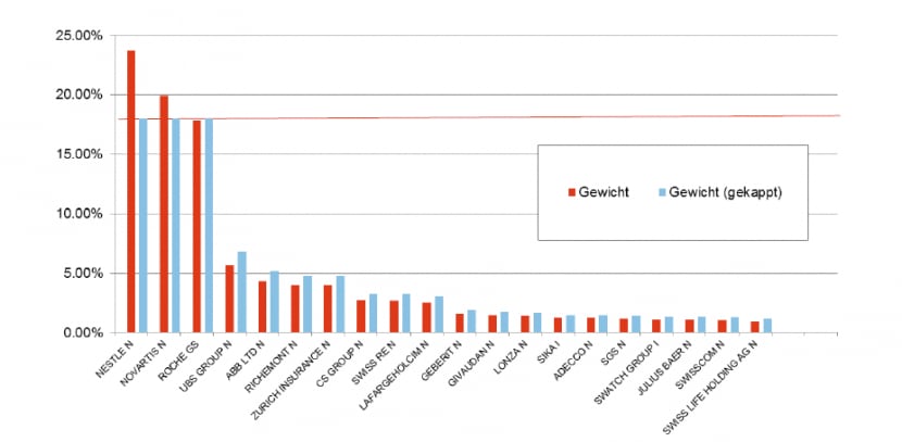 Im DAX beispielsweise darf keine Aktie mehr als 10 Prozent der Gewichtung ausmachen. Dies ohne grössere Marktverzerrung durchzusetzen ist aber auch möglich, weil der deutsche Leitindex 30 Titel aufweist, die unter einander weniger grosse Unterschiede in der Kapitalisierung aufweisen als der Schweizer Markt.