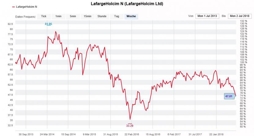 Seit Jahren kommt die LafargeHolcim-Aktie nicht vom Fleck (Quelle: www.cash.ch)