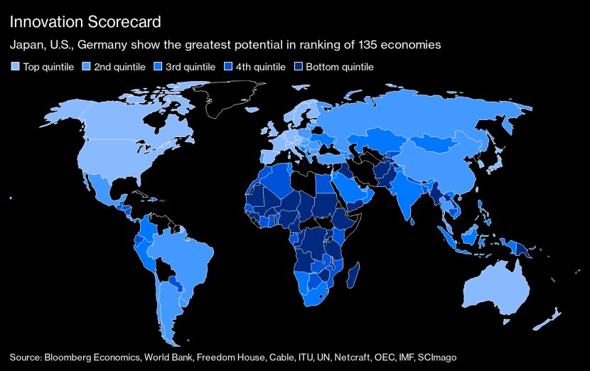 Das Ranking stützt sich dabei auch auf Messgrössen der institutionellen Qualität, der IT-Infrastruktur, des Geschäftsklimas und des Humankapitals. Fortgeschrittene Volkswirtschaften dominieren, wobei Japan, die USA und Deutschland das grösste Potenzial aufweisen.