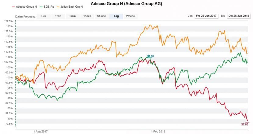 Schlimmer erwischte es die Aktie von Adecco. Mit einem Minus von fast 23 Prozent wird ihr die undankbare Rolle des Schlusslichts zuteil.