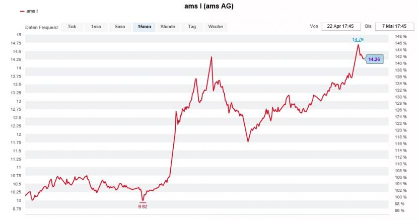 Seit gut zwei Wochen sind die AMS-Aktien im Steigen begriffen (Quelle: www.cash.ch)