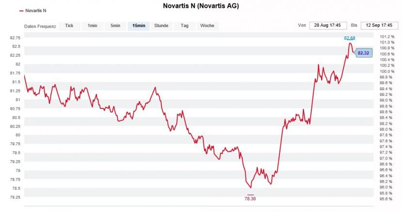 Das Schwergewicht Novartis schiebt den SMI seit knapp einer Woche kräftig an (Quelle: www.cash.ch)